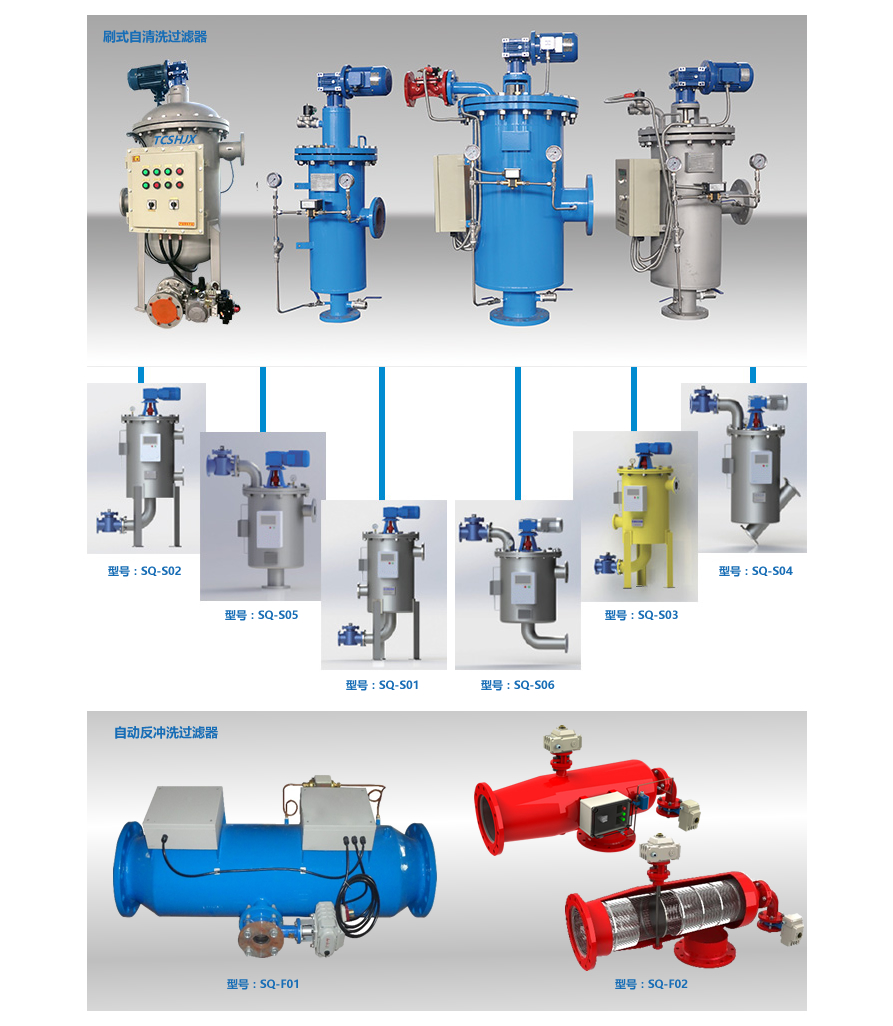 根據(jù)過(guò)濾器清洗方式及工作原理,產(chǎn)品分為兩大類:刷式自清洗過(guò)濾器、自動(dòng)反沖洗過(guò)濾器。