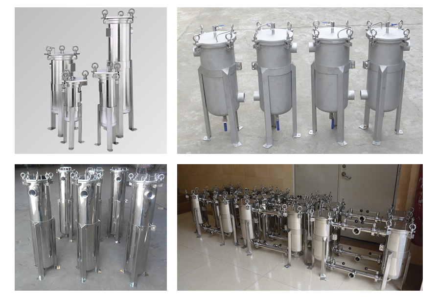 袋式過(guò)濾機(jī)是一種壓力式過(guò)濾裝置,主要由過(guò)濾筒體、多孔支撐濾籃、濾袋等主要部件組成。介質(zhì)由過(guò)濾器外殼的側(cè)入口或頂入口管流入濾袋,滲透過(guò)所需要精度等級(jí)的濾袋即能獲得合格的介質(zhì),雜質(zhì)顆粒被濾袋攔截,便能達(dá)到介質(zhì)被過(guò)濾的效果。