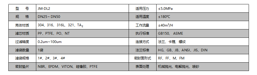 JM-DL2型單袋過(guò)濾器采用頂入底出的過(guò)濾方式,使過(guò)濾液從高處流向低位,流體不受紊流的影響,充分利用濾袋的過(guò)濾效率和使用壽命。用頂蓋直接壓緊濾袋,操作簡(jiǎn)單,使其密封性能更好,采用螺栓緊固和濾器頂蓋,可以承受更高的壓力,同時(shí)避免濾液溢出,還可提供濾芯和濾袋轉(zhuǎn)換的獨(dú)特設(shè)計(jì)。