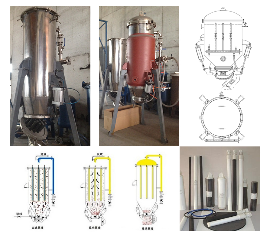 設備底部設有排渣口,通過反吹,可將固體順利剝離,從底部排渣口排出。