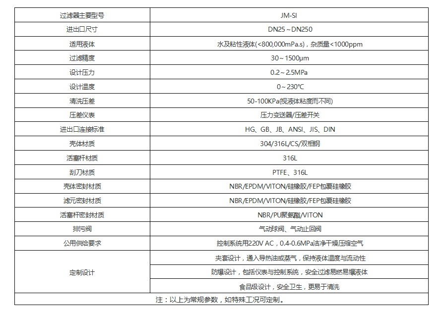JM-S1氣缸刮刀過濾器,是我司自主研發(fā)的新一代機(jī)械自清洗過濾器,已達(dá)到行業(yè)領(lǐng)先技術(shù)水平。與反沖型自清洗水過濾器不同,刮刀過濾器不公用于水過濾,更廣泛適用于溶劑,酸堿液,聚合物,涂料等粘性物料的自清洗過濾,效率更高,精度范圍30-1500微米,可以處理粘度高達(dá)800,000厘泊的液體,應(yīng)用于水處理、石化、冶金、電力、精細(xì)化工、涂料、油墨、造紙、食品飲料、制藥、金屬加工等行業(yè)。