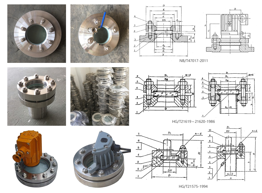 設(shè)備視鏡又也稱壓力容器視鏡、組合式視鏡,通常安裝在食品罐、化工容器或塔器上。適用于各種溫度高、腐蝕性強(qiáng)、易中毒、危險性較大、易結(jié)晶的介質(zhì),觀察其反應(yīng)情況,以保證正常安全生產(chǎn)。該系列產(chǎn)品均按:NB/T47017-2011、HG/T21575-1994、HG/T21619~21620-1986等標(biāo)準(zhǔn)生產(chǎn)。針對一些具有粘附性的介質(zhì),視鏡可以增加刮刀(刮刀視鏡)。