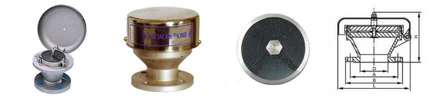 防爆阻火透氣帽也稱阻火通氣罩,通常裝在輸送或排放易燃易爆氣體的儲罐和管線末端,是用來阻止易燃、易爆氣體的火焰和防止回火而引起爆炸的安全裝置??捎糜诨鹁?、加熱燃燒系統(tǒng)、石油氣體回收系統(tǒng)或其他易燃氣體系統(tǒng)。