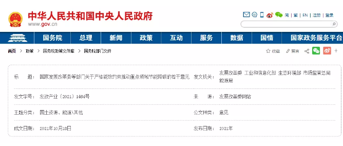 10月21日,國家發(fā)改委提出了約束推動重點領(lǐng)域節(jié)能降碳的若干意見,其中針對石化化工、和冶金、建材領(lǐng)域?qū)iT發(fā)布了《石化化工重點行業(yè)嚴(yán)格能效約束推動節(jié)能降碳行動方案(2021-2025 年)》、《冶金、建材重點行業(yè)嚴(yán)格能效約束推動節(jié)能降碳行動方案(2021-2025年)》兩大附件!
